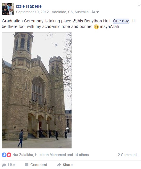 I remember 4 tahun sebelum tu, masa aku lalu luar Bonython Hall tu, aku nampak majlis konvo tengah berlangsung, I told myself... I will be there one day.